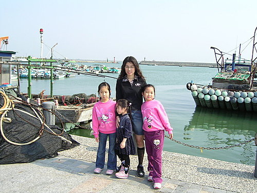 先跟漁船照一張,三寶在鬧變扭,故意把頭轉向一邊 這張大家就都很配合跟爸爸合照時,大家都在強位子,都想要站在爸爸旁邊結果三寶強贏了,二寶生氣之下,想阻止我照相跟我合照時,大家就沒有意見每一次帶小朋友出門,後來都變成吵架大會